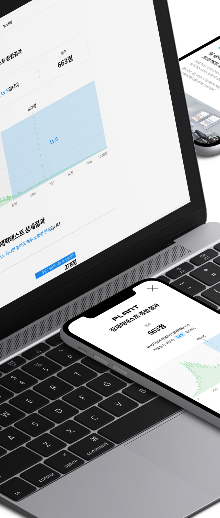 테스트 결과에 따른 맞춤형 피드백을 제공하고, 카카오톡 저장 또는 문의도 가능합니다. 사용자는 언제든 결과를 확인하며 자신의 역량을 체계적으로 관리할 수 있습니다.